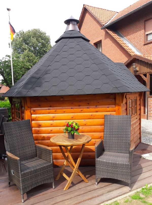 Ein überdachter Pavillon mit Sitzplätzen und einer Grillmöglichkeit sorgen in den Sommermonaten für erholsame Stunden im Freien. Unsere Gäste erwartet eine gemütliche und freundliche Atmosphäre.